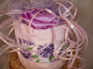 Торт из полотенец выполнен из 2-х полотенец 50*100 см, декоративных лент, органзы.